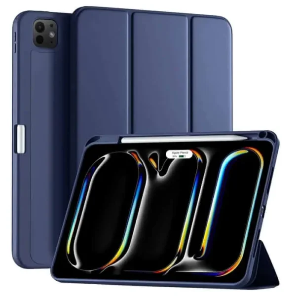 Apple iPad Pro 13 (2024) Navy Blue Smart Folio Leather Case with Pencil Holder – Magnetic Stand Cover