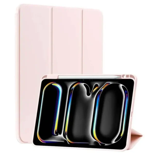 This Apple iPad Pro 13 (2024) hybrid case features a 3-in-1 protective design combining a hard PC back, soft TPU bumper, and reinforced corners. It delivers strong shock absorption while maintaining a stylish rose gold finish.